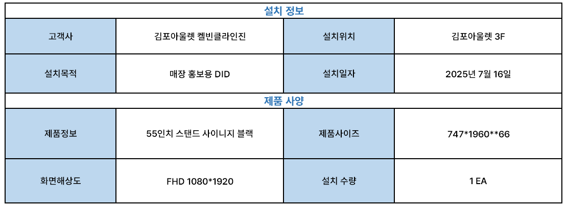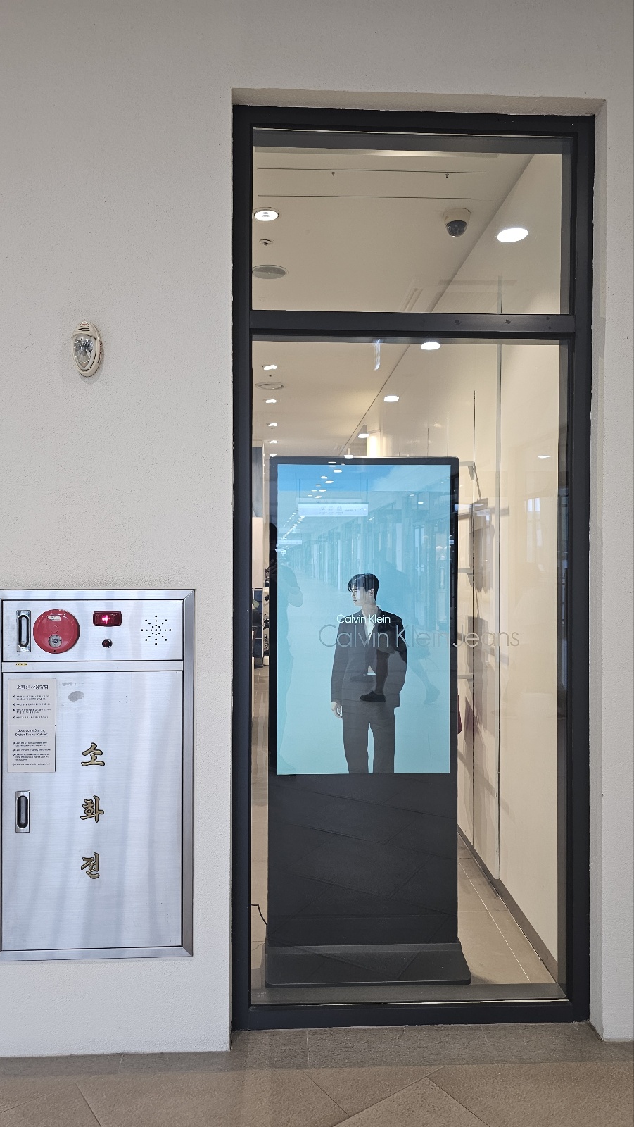 김포아울렛 켈빈클라인진 매장 홍보용 DID 스탠드 사이니지 55인치 설치